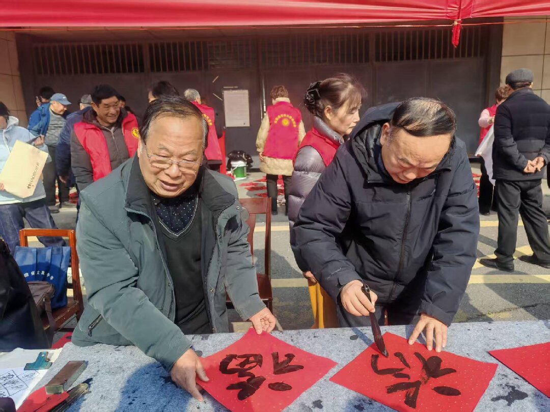 志愿者們一邊精心創(chuàng)作,一邊主動將寫好的春聯(lián)和福字送到市民手中,耐心詢問大家的喜好,按需書寫定制聯(lián)語,現(xiàn)場互動溫馨熱烈。拿到紅彤彤春聯(lián)的市民們笑意盈盈,濃濃的年味在墨香與歡聲笑語中悄然蔓延。