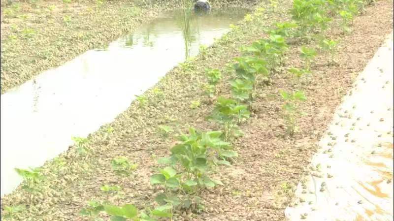 關(guān)集鎮(zhèn)梁莊村養(yǎng)殖戶孫磊告訴記者:“這屬于種黃豆跟黑斑蛙套養(yǎng)模式。套養(yǎng)模式有一定的好處:黑斑蛙可以吃黃豆苗下的害蟲。天熱的時候,青蛙都在這個黃豆下面乘涼,黑斑蛙的習(xí)性,它喜歡陰涼處。”